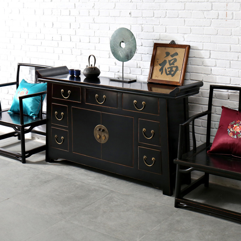 Chinese porch cabinet solid wood furniture new Chinese style cabinet retro sideboard cabinet classical hall cabinet living room cabinet old