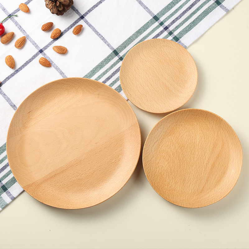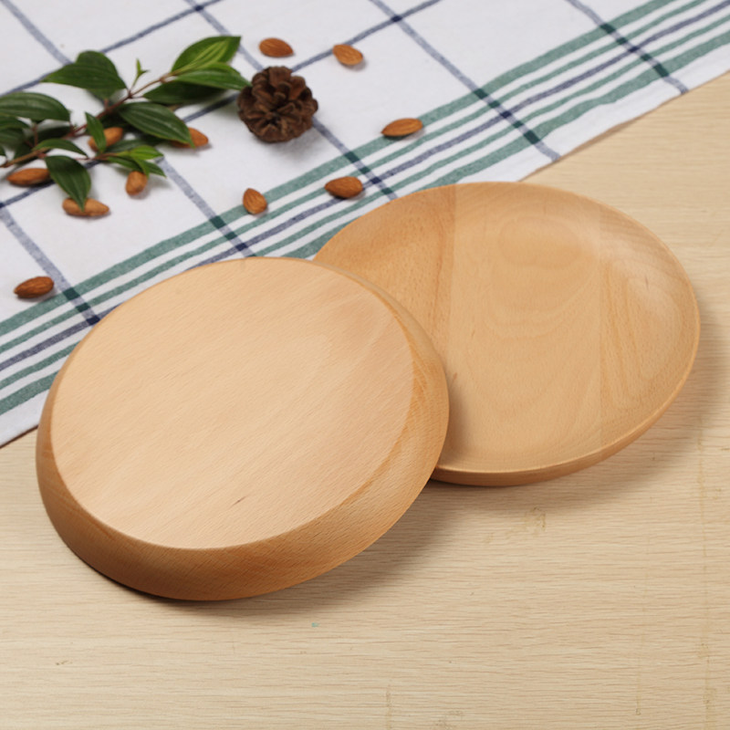 Natural beech wood Japanese style minimalist wood plate round creative solid wood count heart snack wood saucer cake fruit tray