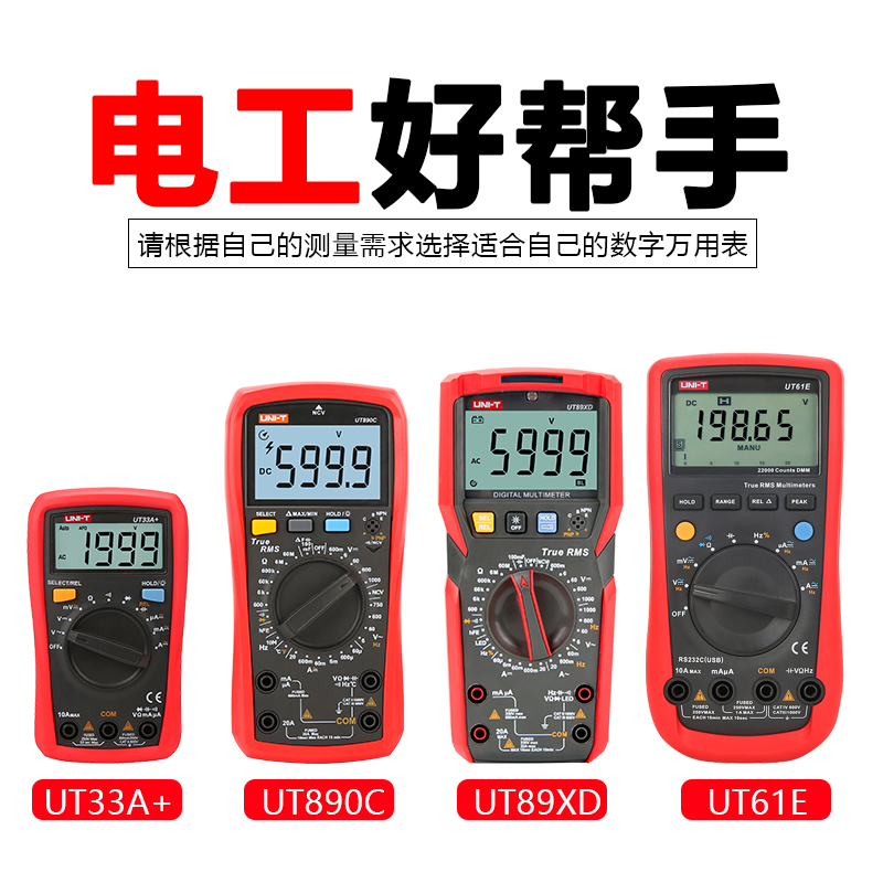 Beginner Manual Range (Basic) UT33B+ Beginner Manual Range (with NCV Test) UT33D+ Electronic Repair (Measurable Capacitance Frequency) UT136B+ Professional Upgrade Burn-Proof True RMS (Measurable Capacitance Frequency) UT890D+ Professional Grade Burn-Proof True RMS Classic (Measurable Capacitance Frequency Temperature) UT890C Beginner Auto Range (Capacitor Diode) UT33A+ Beginner Manual Range (Measurable Temperature) UT33C+ Integrated Mini (Measurable Capacitance Frequency) UT125C Professional Repair (Measurable Capacitance) UT39A+ Professional Repair (Measurable Capacitance Temperature Frequency) UT39C + Professional Maintenance (Measurable Capacitance Frequency Temperature) UT136C+ Professional Grade Anti-Burn And Anti-Drop Intelligent NCV Temperature Edition True RMS (Measurable Capacitance Frequency Fire Wire) UT89X Professional Grade Anti-Burn And Anti-Drop Intelligent NCV Temperature Edition True RMS (LED Lamp) UT89XD Precision Maintenance Wide Screen (Measurable Capacitance) UT58A Precision maintenance wide screen (measurable capacitance inductor) UT58D precision maintenance dedicated (measurable capacitance frequency) UT61A precision maintenance four-and-a-half (measurable capacitance frequency) UT61E precision maintenance frequency conversion anti-interference (measurable capacitance frequency) UT139C UT191E three-proof digital multimeter (full-featured mistest protection) UT139A (VFC frequency conversion detection NCV non-contact power test function) (UT51 standard) 10A current Diode triode (UT61E+) four-and-a-half LPF low-pass filter ACV+DCV (UT71A)High Precision Four-and-a-Half Digit Count (True RMS) (UT123D)4mF Large Capacitance Measurement Digital Multimeter (UT118B)Non-Contact Measurement Pen Multimeter (UT120C)Four-Digit Semi-Automatic Multimeter (UT15B-PRO)VFC Function True RMS Multimeter (UT105) Measurable Resistance Manual Range Multimeter