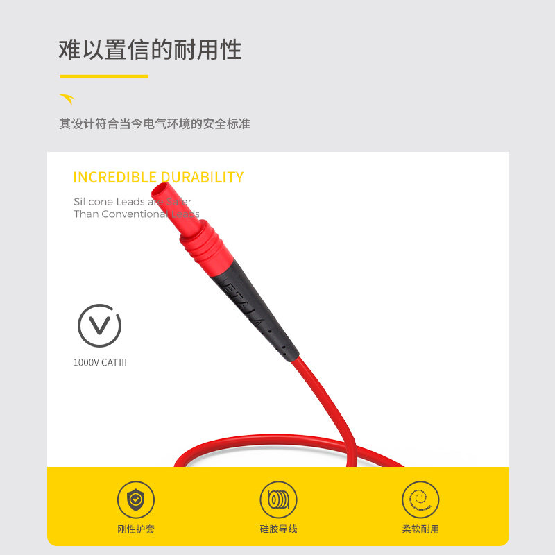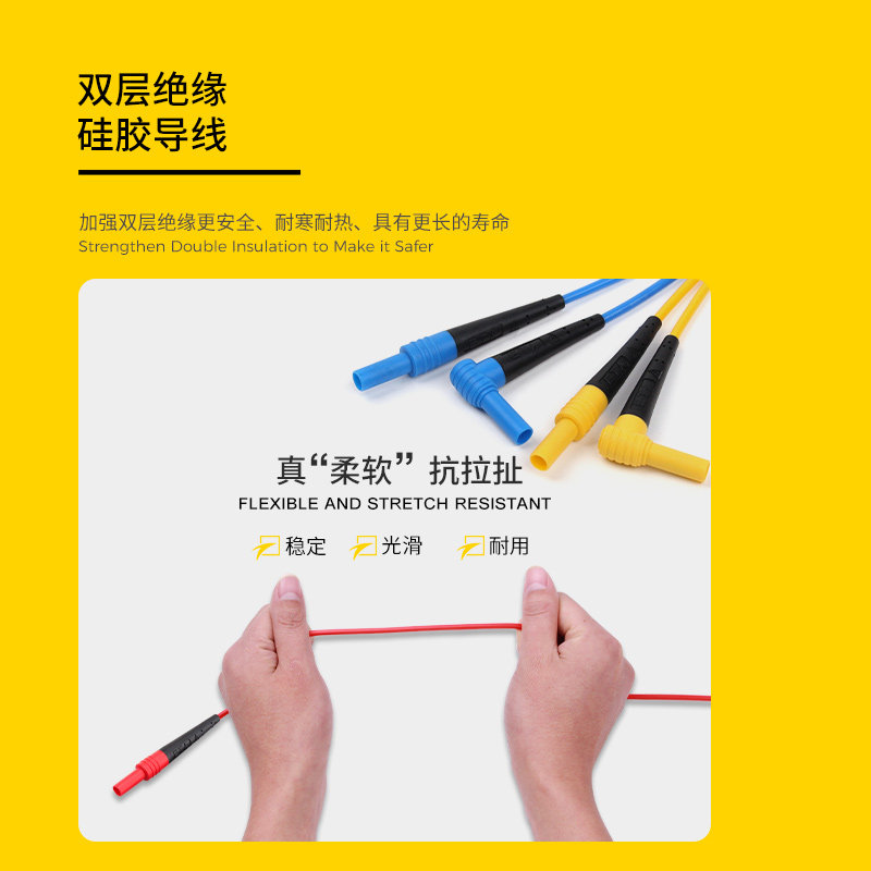 ETA4164W silicone double plug adapter cable Soft high temperature red, black, yellow, green and blue test cable