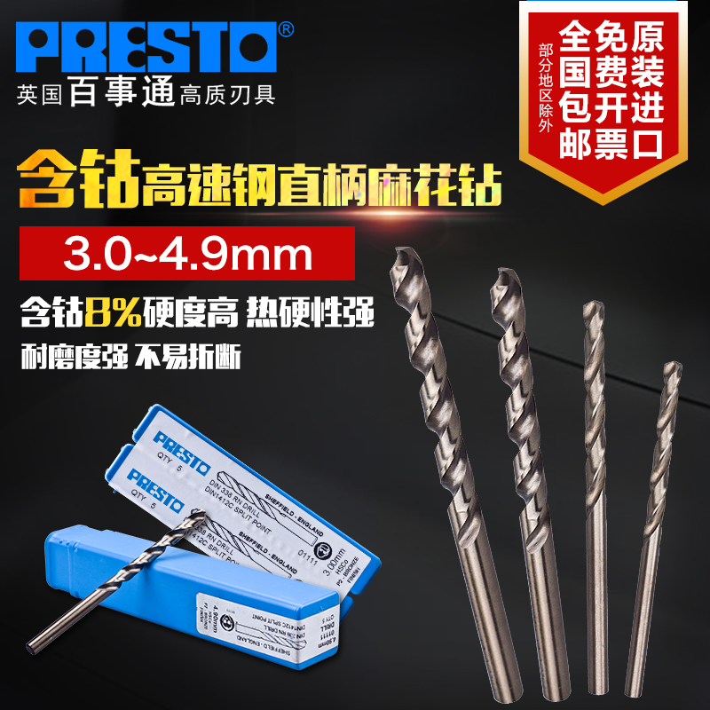 PRESTO UK PepsiCo import drill with cobalt high speed mesh straight shank Twist Drill Tip 3 0-4 9mm