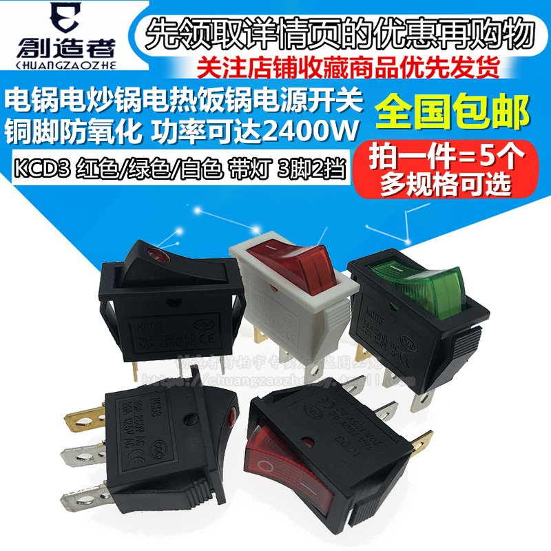 KCD3 electric cooker electric wok electric pot multi-star pot multi-purpose pot boat type switch with light 3 feet 2 power switch