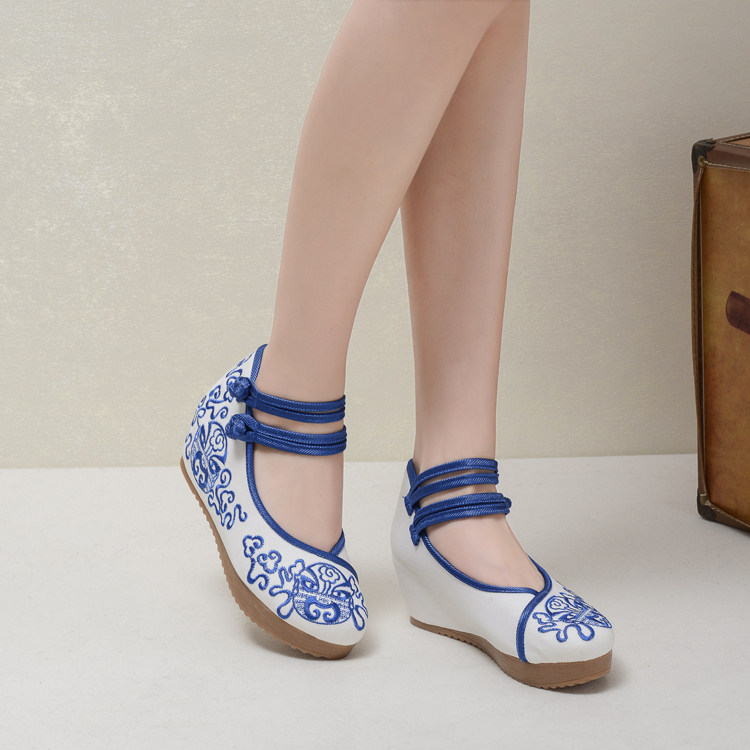2020 spring old Beijing cloth shoes embroidered shoes women's shoes inner heightened single shoes ethnic style casual cloth shoes