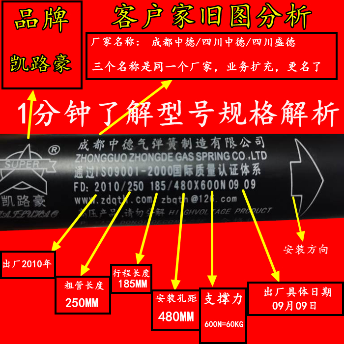 400X650N Sichuan Shengde heavy duty hydraulic rod Kailuhao pneumatic pressure rod bed with air support Zhongde gas spring