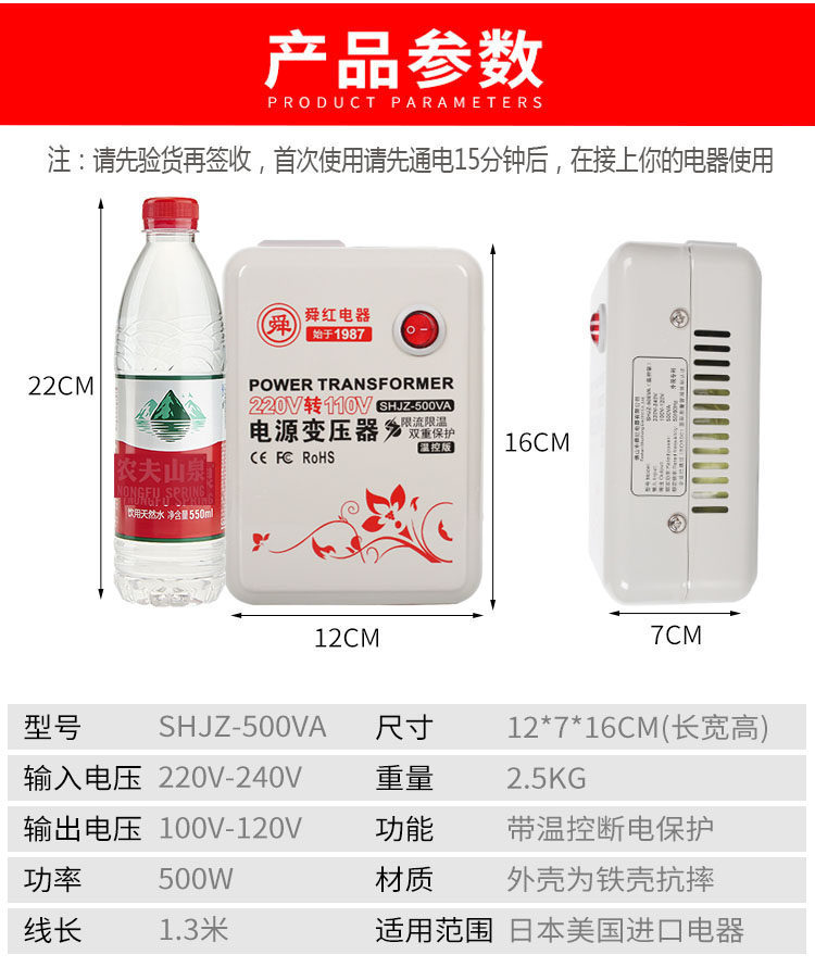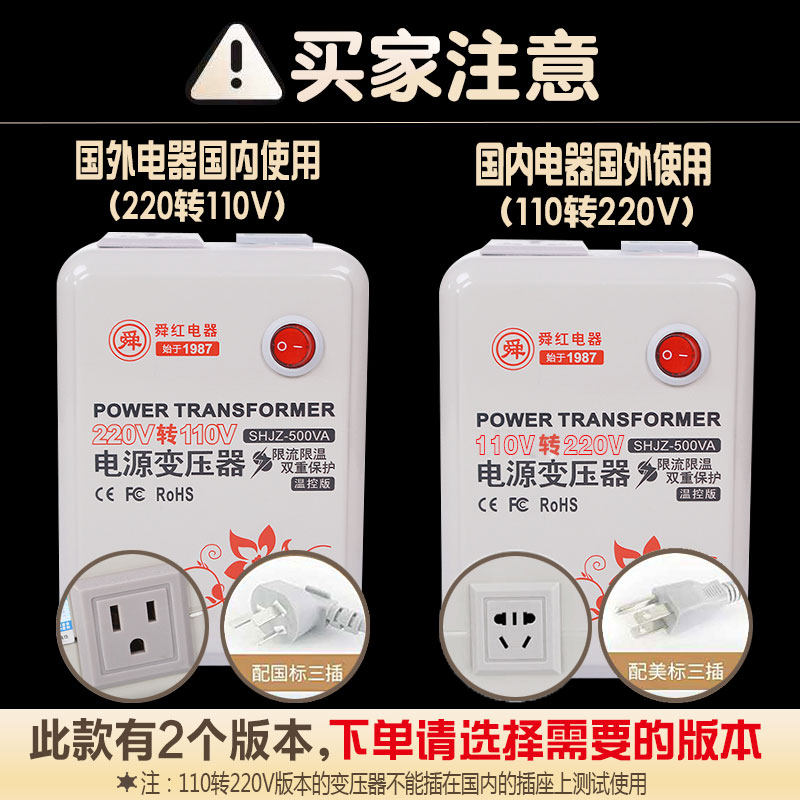 Shunhong transformer 220V to 110V100V Japan and the United States 110V to 220V power supply voltage converter 500W