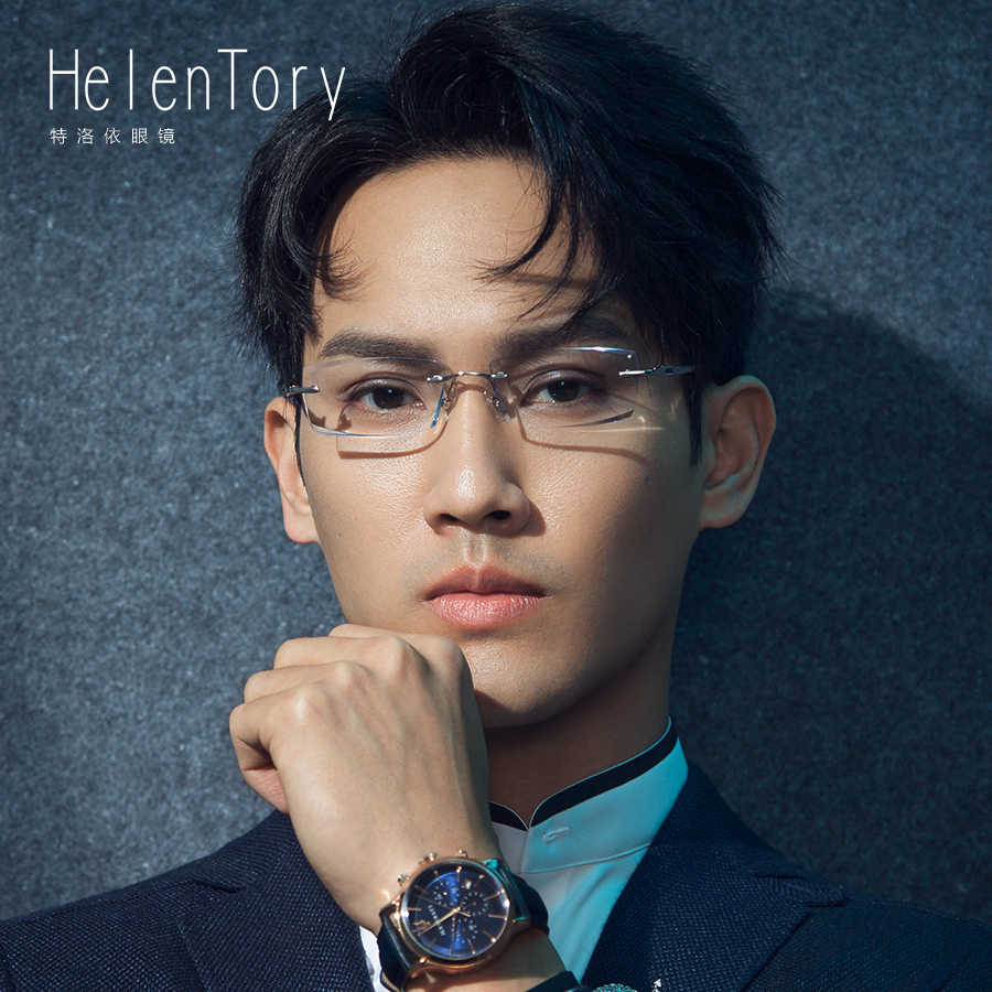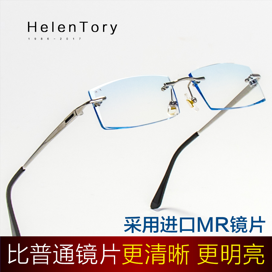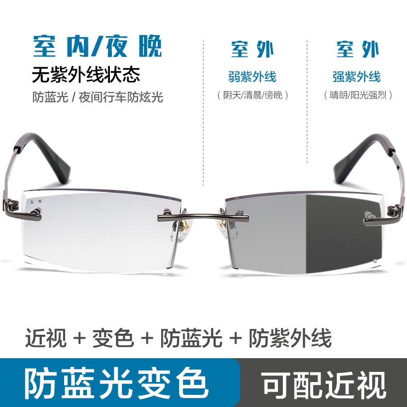 Anti-blue light discoloration diamond cut edge glasses men no frame myopia pure titanium alloy frame flat light anti-radiation large face astigmatism