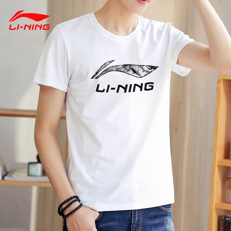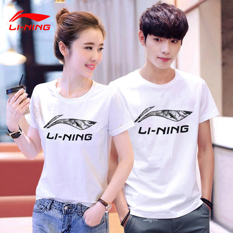 China Li Ning short-sleeved T-shirt men and women lovers large label logo summer large size cultural shirt fitness running half sleeve