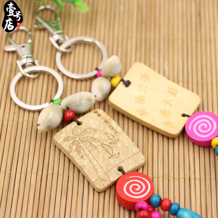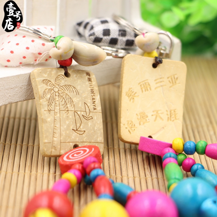 Hainan Sanya Travel small gift key buckle ornament Handicraft Coconut Shell Shell Bag Hanging Bagged Gift