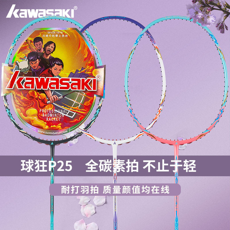 Kawasaki Badminton Racket Super Pound G6 Ball Mad P23 Ninja Fire Fox Full Carbon Pat for male and female students Junior introductory clap-Taobao