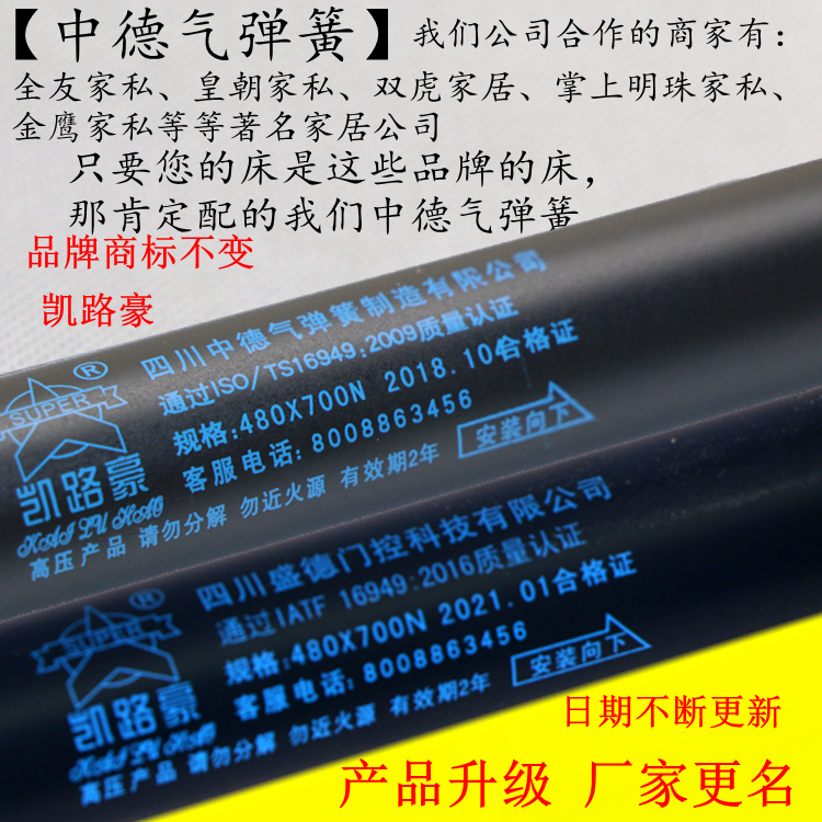 480X700N special hydraulic rod for furniture bed box Kailuhao air pressure rod bed gas support Sino-German gas spring