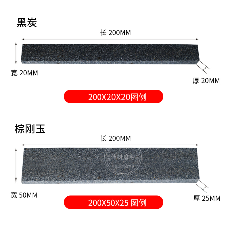 Brown corundum 200*20mm*20mm(hard) brown corundum 200*50mm*25mm(hard) black charcoal 200*50*25mm (softer and sharp)