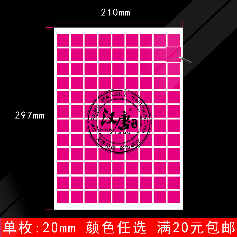 Color Adhesive Printing Paper Optical Noodle Blank Label Stickers Square 2cm Self-viscous Self-viscosity Sticker A4 Waterproof Paper Stickers Digital Label Label Label Label Label Label