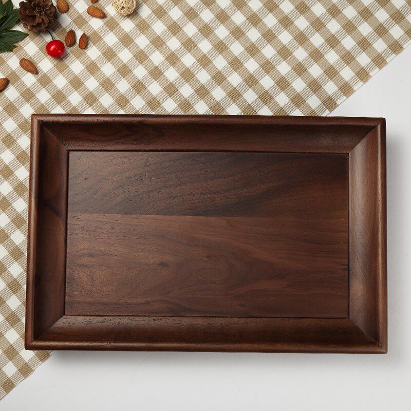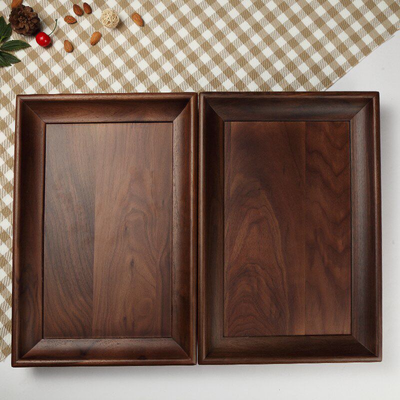Natural Black Walnuts Day Style Solid Wood Plate Rectangular Nursery Creative Tea Water Cup Tray Large Number Tea Tray Tea Set Fruit Tray