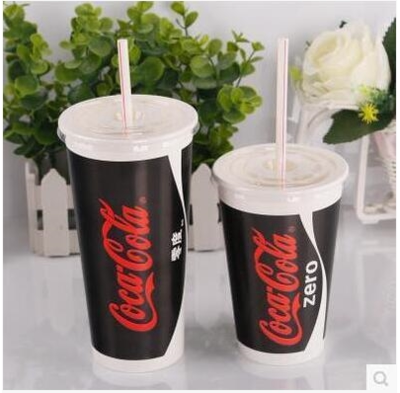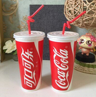 Thickened double-coated disposable cola cup 500 700ml beverage cup Coca-Cola cup with lid 1000