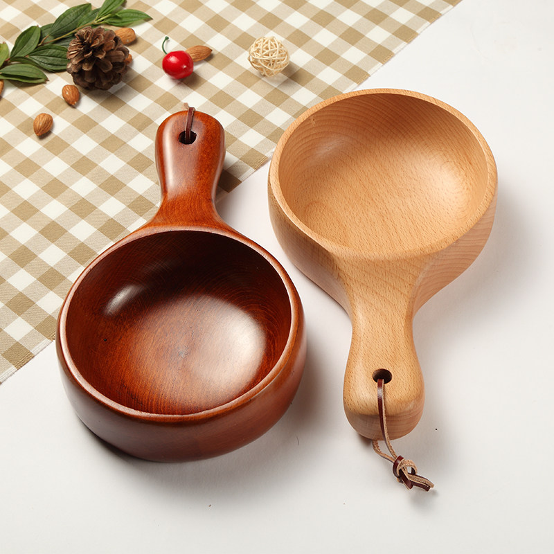Natural beech Japanese large solid wood bowl handle salad bowl wooden fruit bowl pickle dish bowl creative tableware