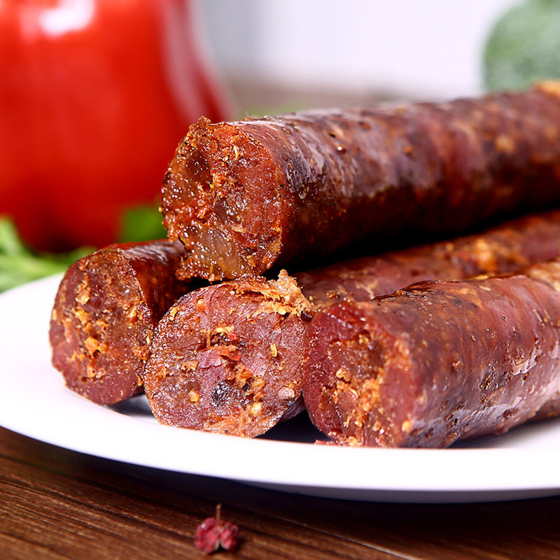 Sichuan spicy sausage farm sausage smoked grilled sausage Authentic Qingchuan specialty pig Sichuan flavor bacon food