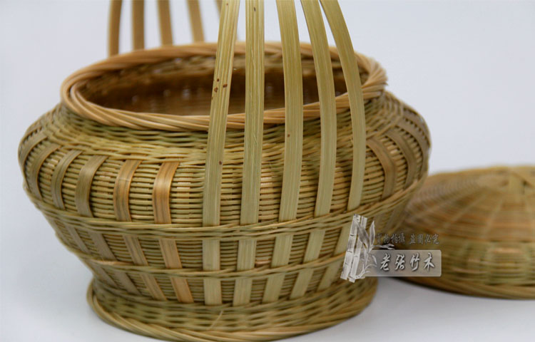 Bamboo Rice Basket Carry-on Basket Pure Handmade Bamboo made of basket Basket Fruit Basket Containing Basket Bamboo Basket Technique Gift Hem basket Basket Lifting Basket