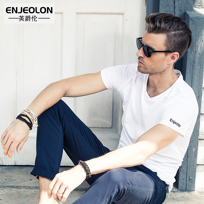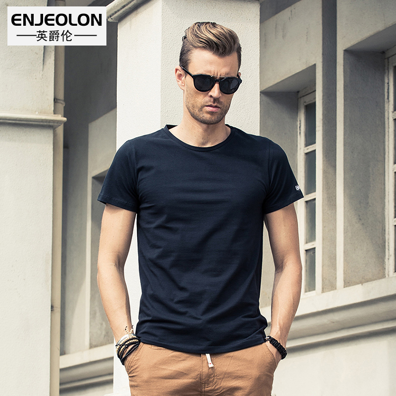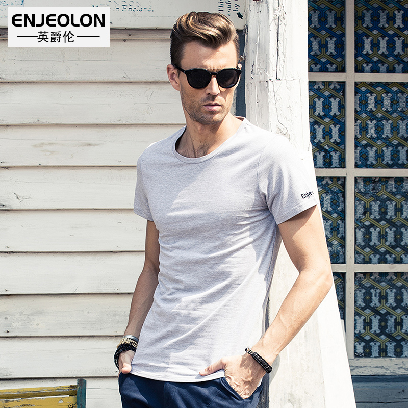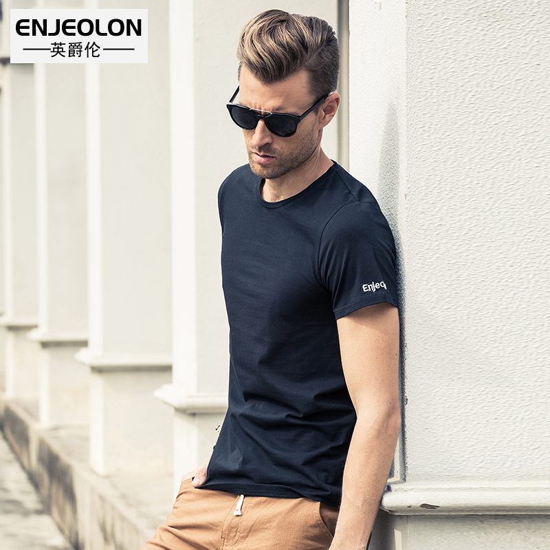 Yingjue Lun summer new men's round neck short-sleeved top Solid color men's embroidered letter T-shirt T-shirt
