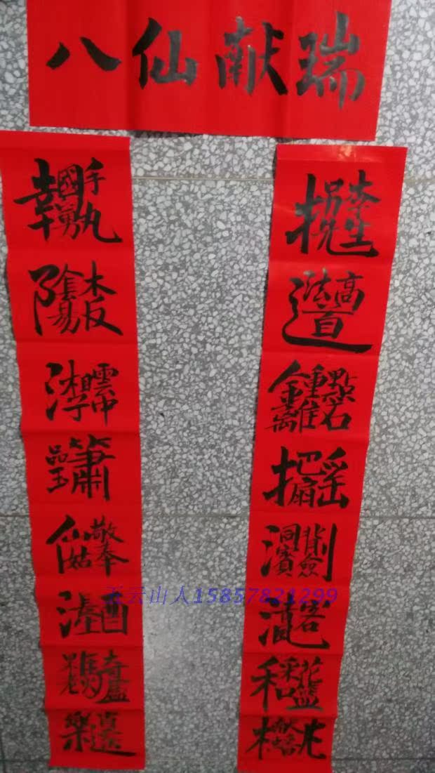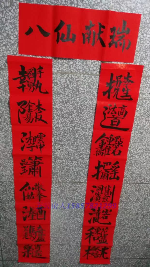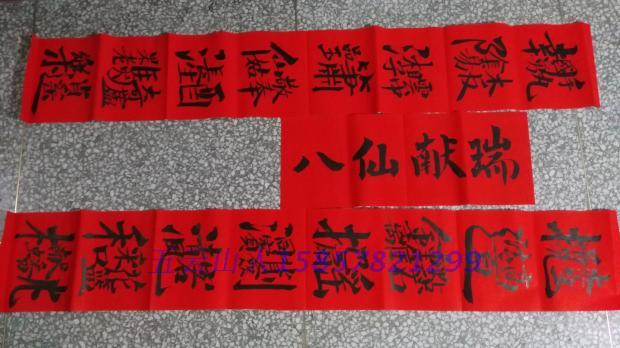 Handwritten Spring Festival Eight Immortals Wishing the Great Birthday to the Five-Wan-Shan People's Calligraphy True Miraculously Red Paper Couplets Red Paper Couplets Red Paper Couplets