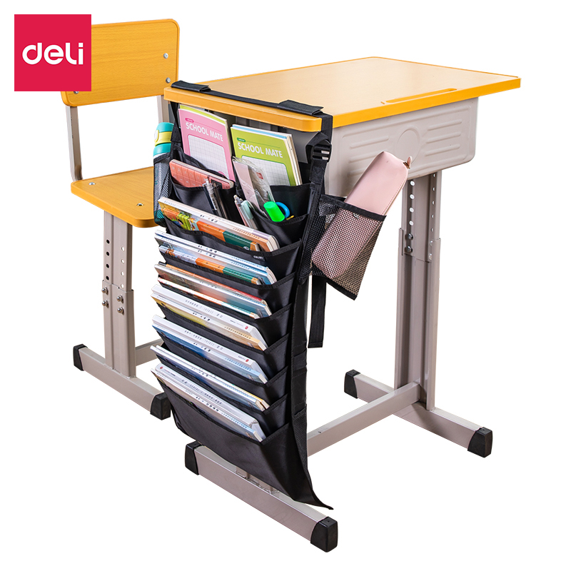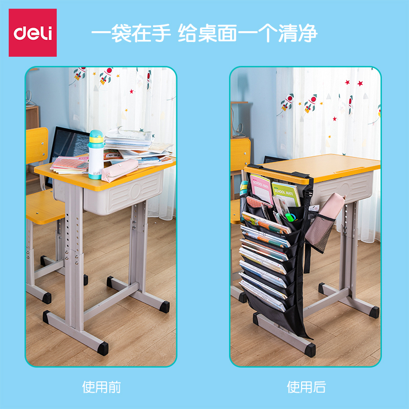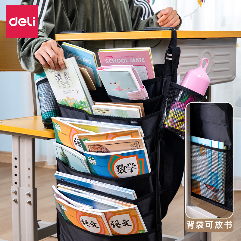 Deli hanging book bag Multi-function large-capacity desk book hanging bag Adjustable student learning book storage bag hanger High school textbook Oxford cloth Creative hanging book bag desk artifact