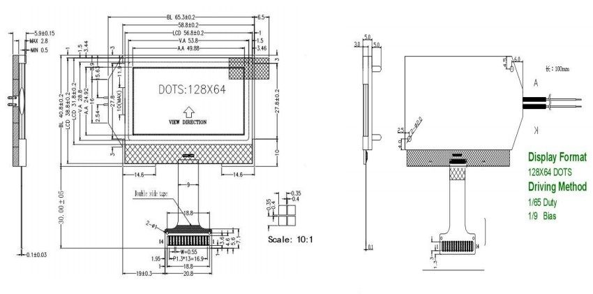 12864 COG dot matrix LCD display 12864B5 COG LCD module COG12864 standard screen