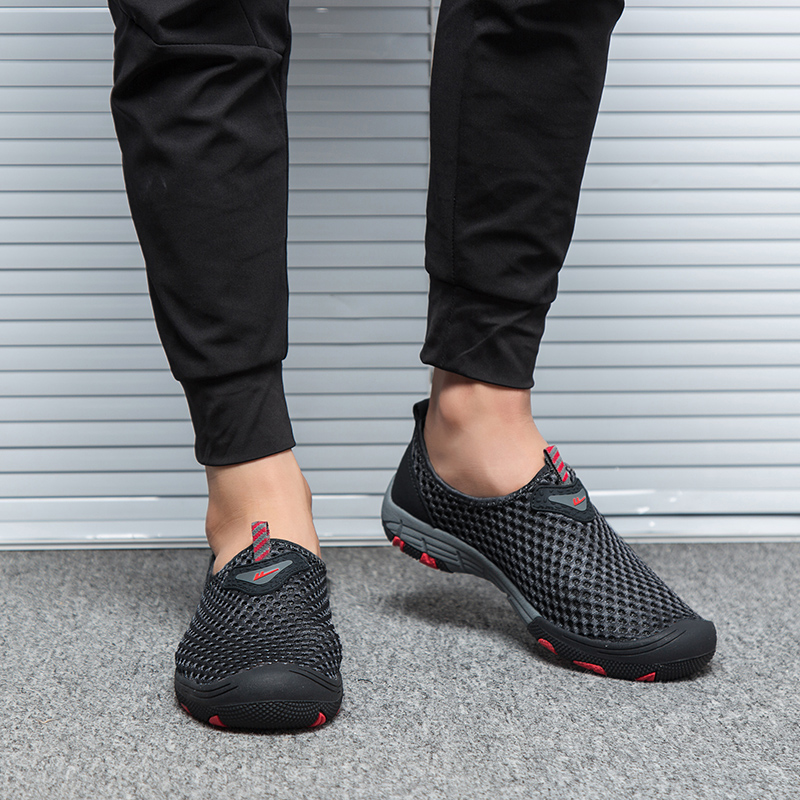 New pull back jogging shoes Korean version of the tide men's shoes slip-on set-foot net shoes lightweight net running shoes casual running shoes