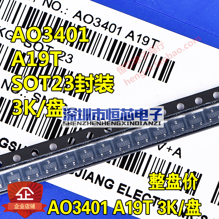 SMD field effect transistor AO3401 A19T 2 8A 3A Large volume SOT23 P-channel MOS tube 3K disc