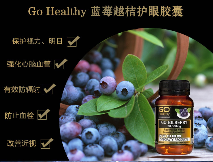 New Zealand Direct Mail Go Healthy High Source Blueberry Bilberry 30000mg Essence Capsules 60 Capsules