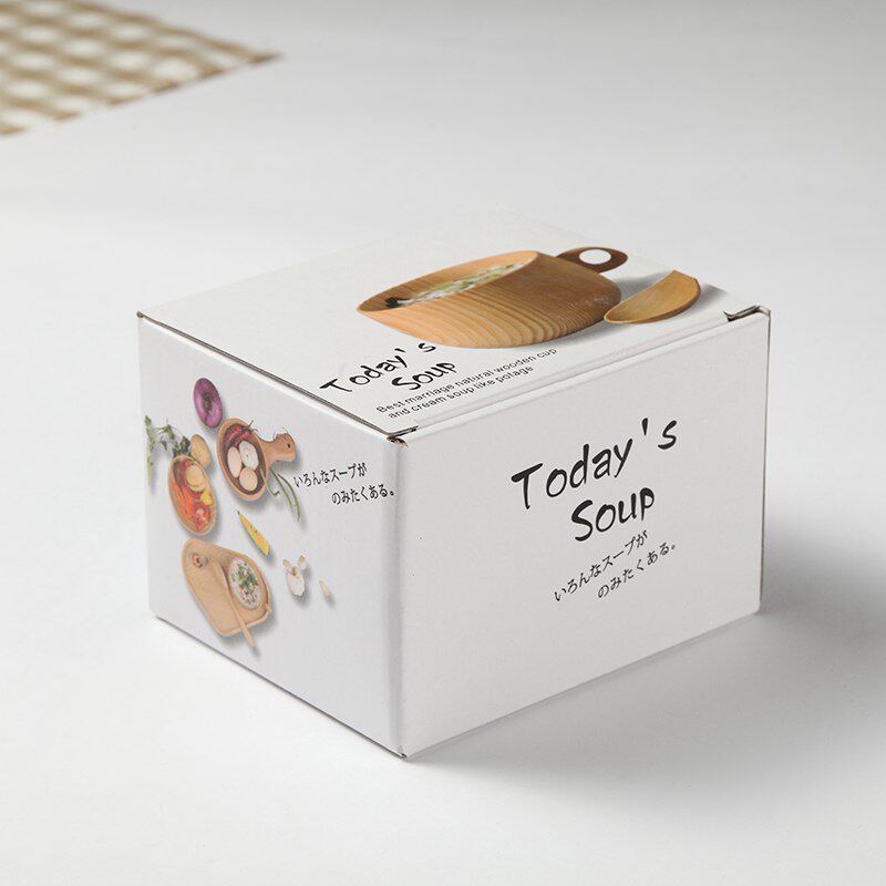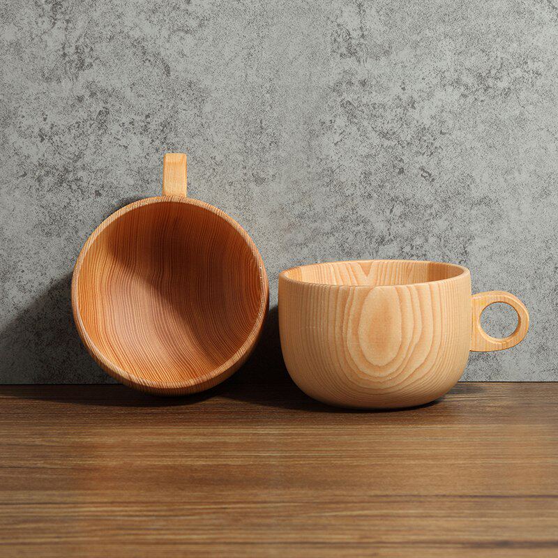 Handle Japanese wooden bowl export creative natural solid wood household tableware children's baby rice bowl soup bowl porridge bowl