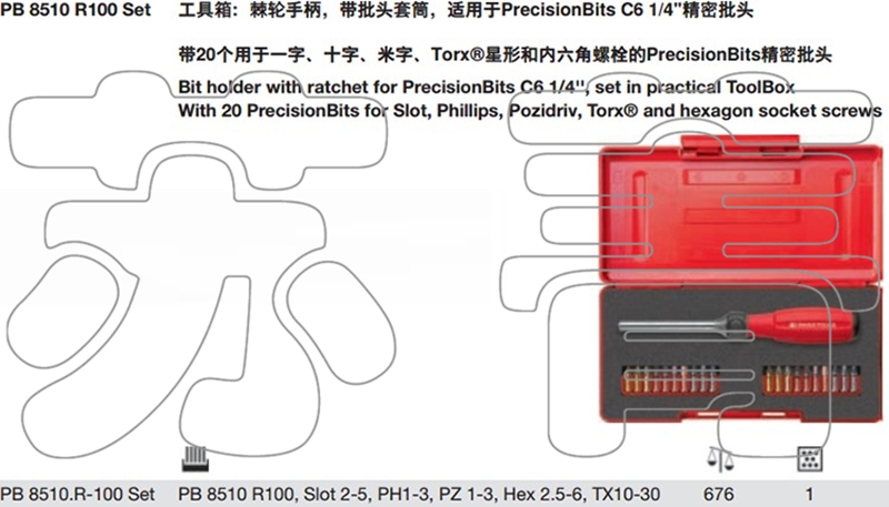 Original Swiss PB SWISS TOOLS ratchet batch screwdriver set PB 8510.R-100 SET