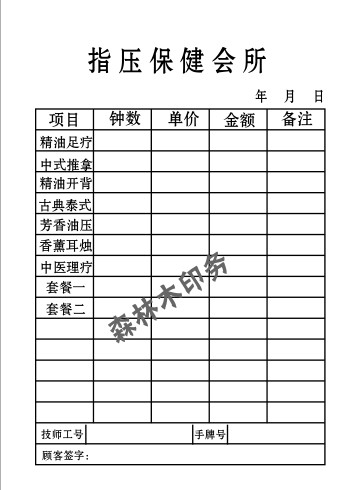 Custom-made project list Sauna manicure KTV bath foot bath consumer service running water list 23 documents printing