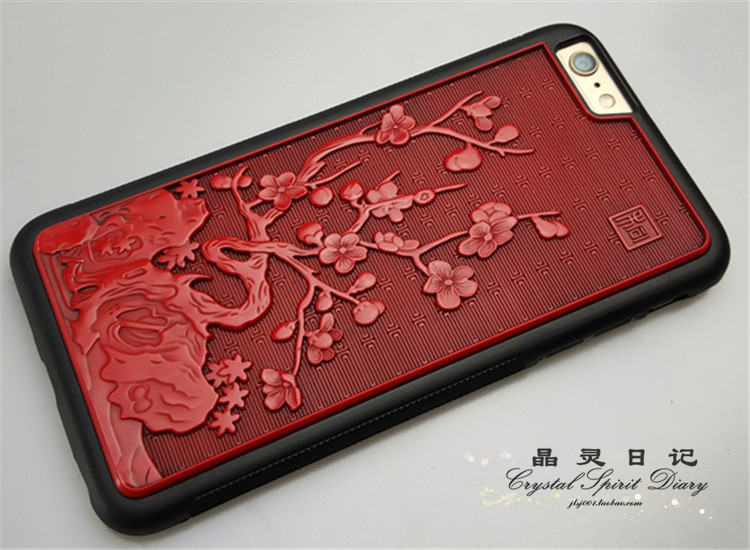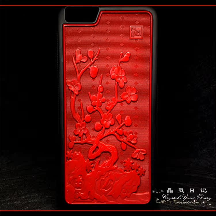 Large paint carved paint red mei arrogant lacquer phone case iPhone 6 7 8Plus 11 12PROMAX