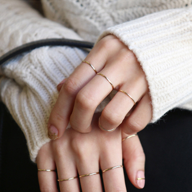 S925 sterling silver Korea ins Europe and the United States cold wind extremely simple slender section aperture joint suit closed line ring