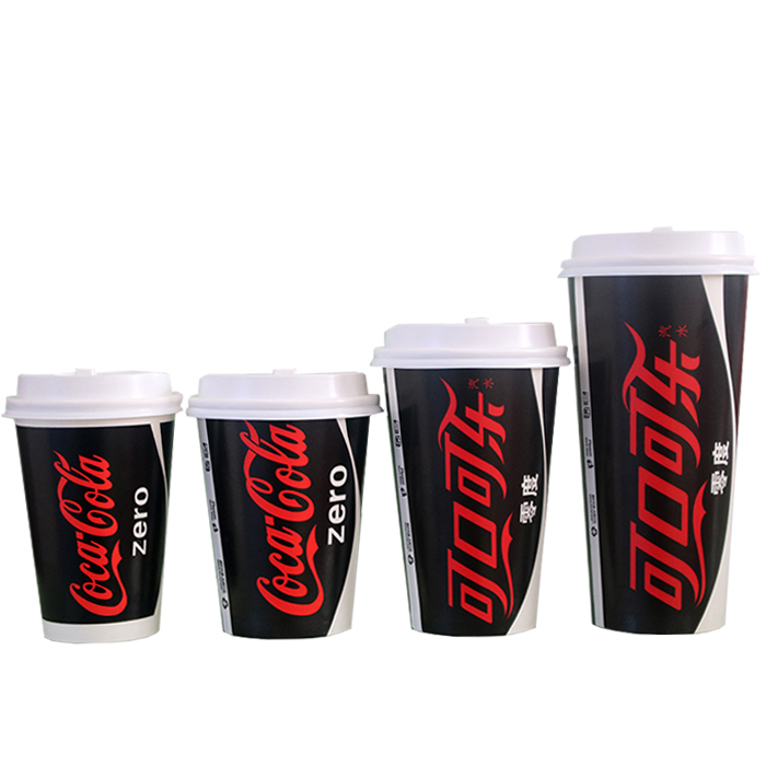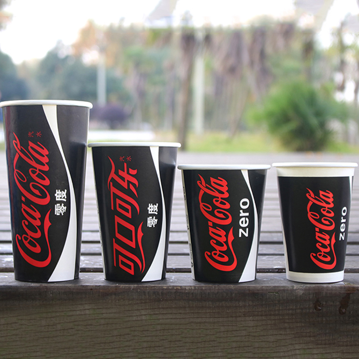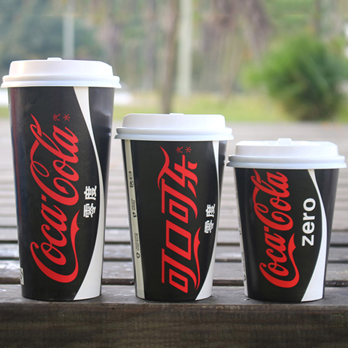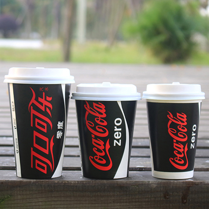 Disposable cola cup paper cup thickened black zero degree Coca-Cola cup with lid drink cup 500 700ml
