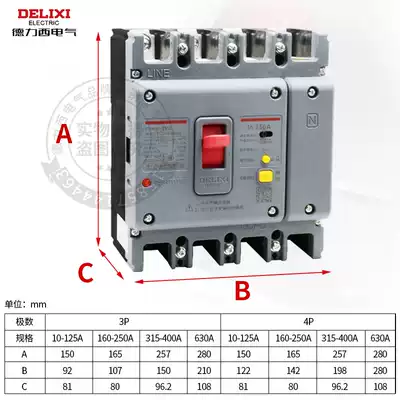 Delixi three-phase four-wire air switch with leakage protector molded case CDM3L160A250A400A