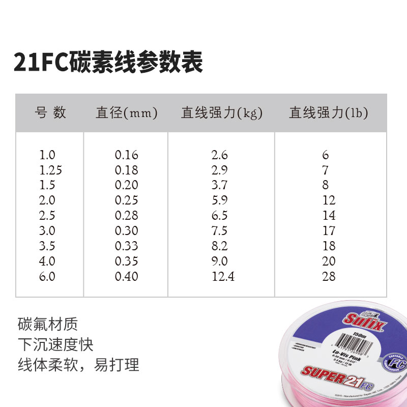 Sufix Sufix 21FC carbon line 150 meters carbon and fluorine line Sub-line Fishing line Leading line speed submersion