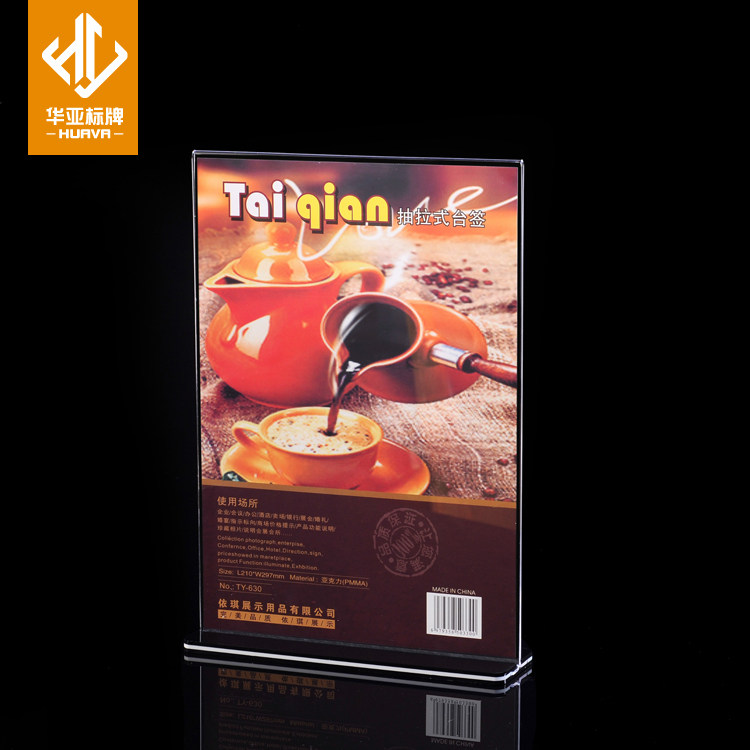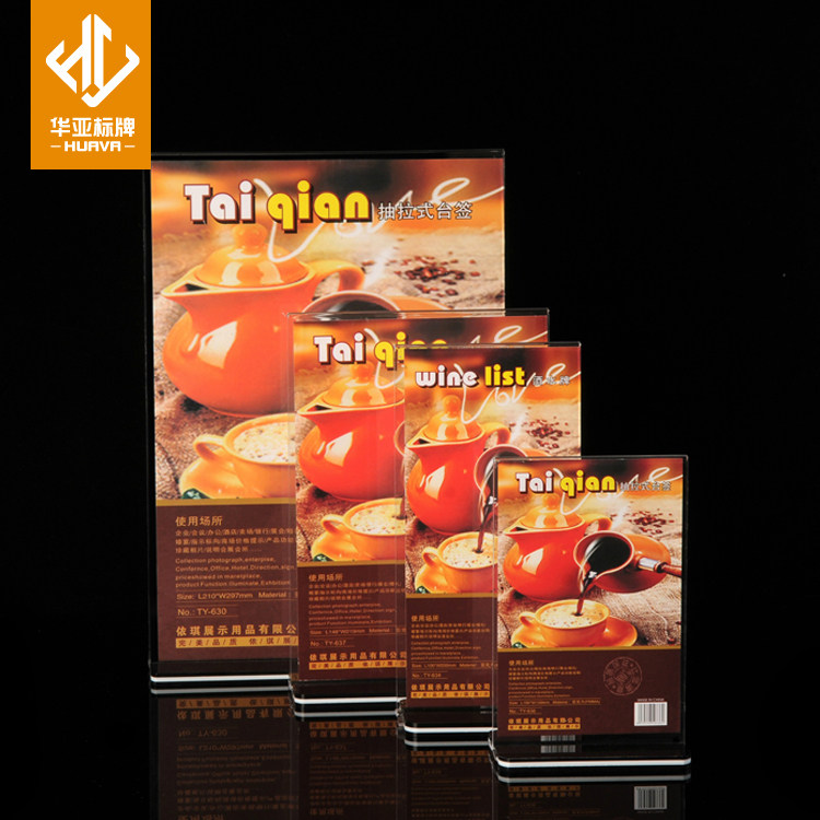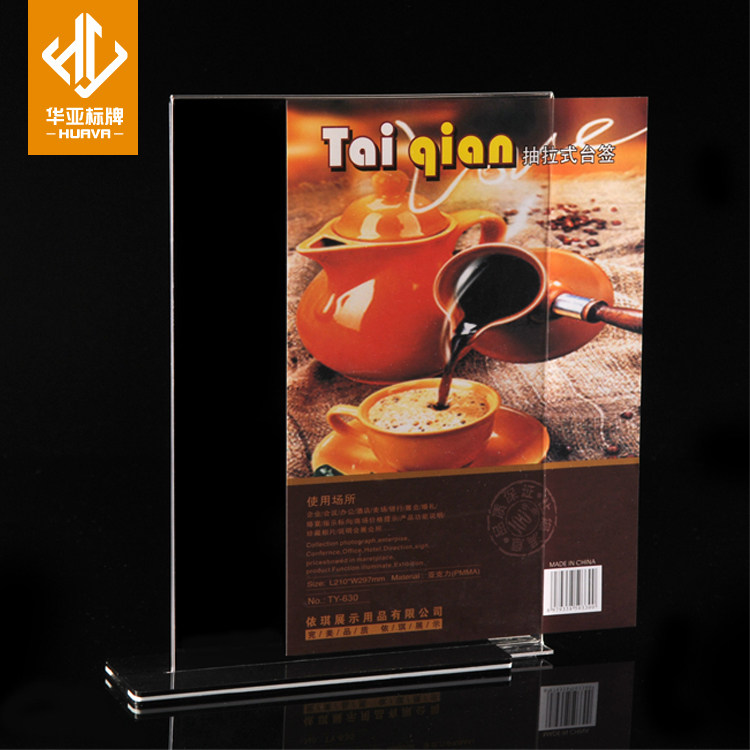 A4 Acrylic T-shaped double-sided table card Black bottom table card Conference card table card Table card Drink card Menu card Erect card