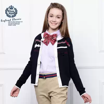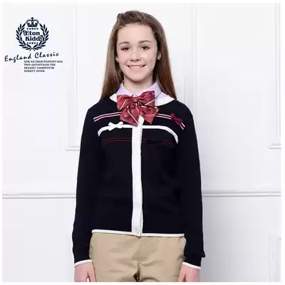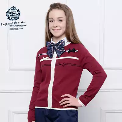 Eaton Gide primary and secondary school school uniform maroon knitted cardigan spring girls bow navy blue round neck sweater