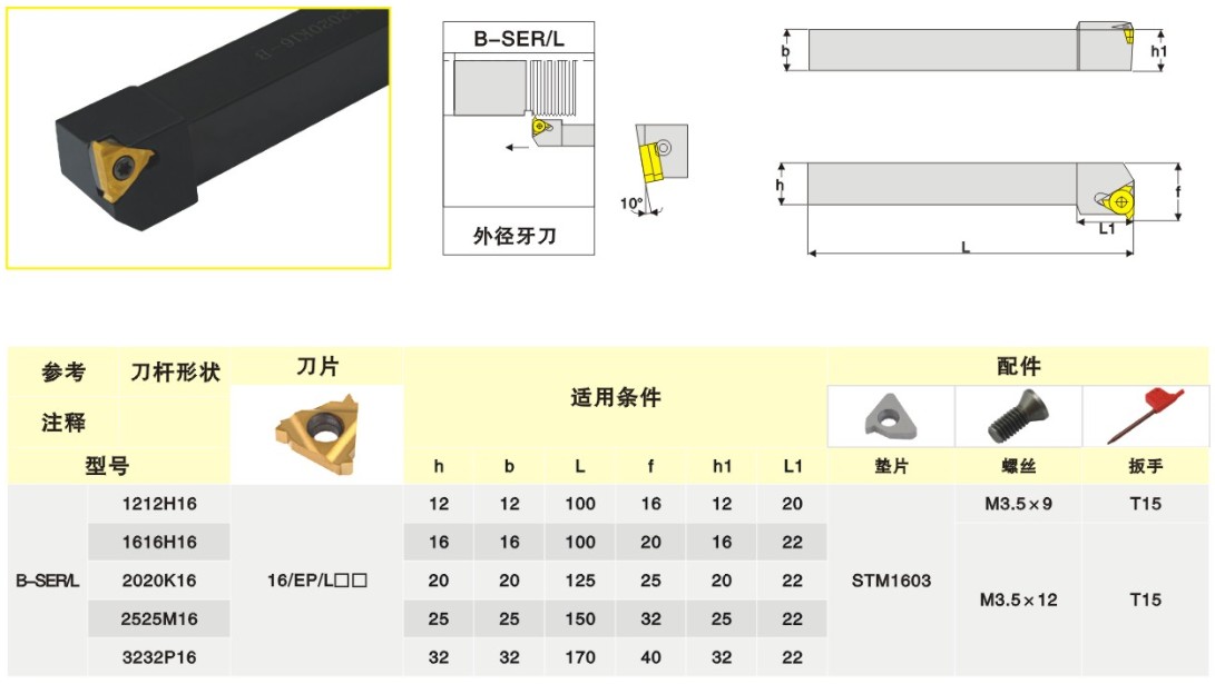 Horizontal external thread CNC knife rod B-SER SEL1212H16 1616H16 2020K16 2525M16