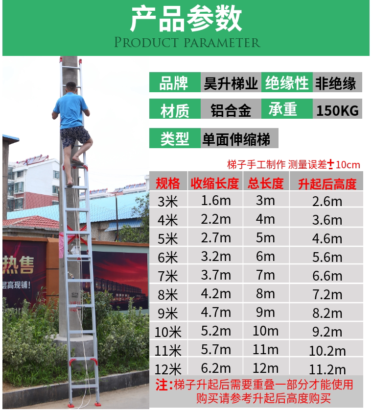 Aluminum alloy telescopic ladder household ladder lifting engineering ladder customized special thickness 6 meters shrink attic 7 8 10 12 meters
