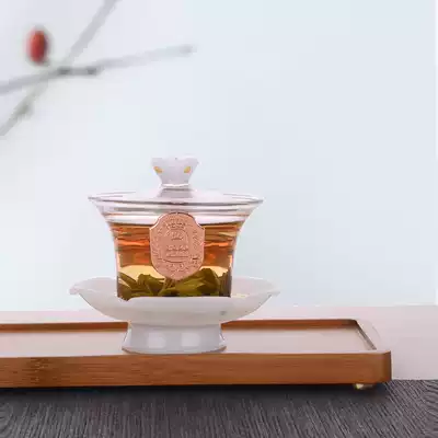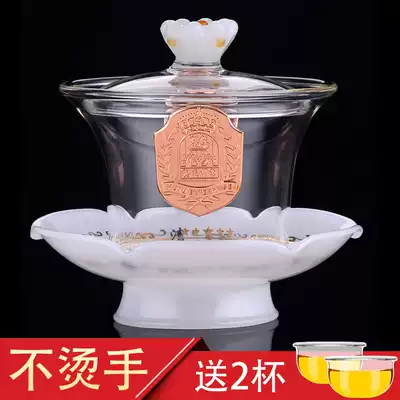 Taiwan 76 heat-resistant glass anti-scalding cover bowl thickened glass three-cai bowl Hand grab pot Transparent Kung Fu tea set Teacup