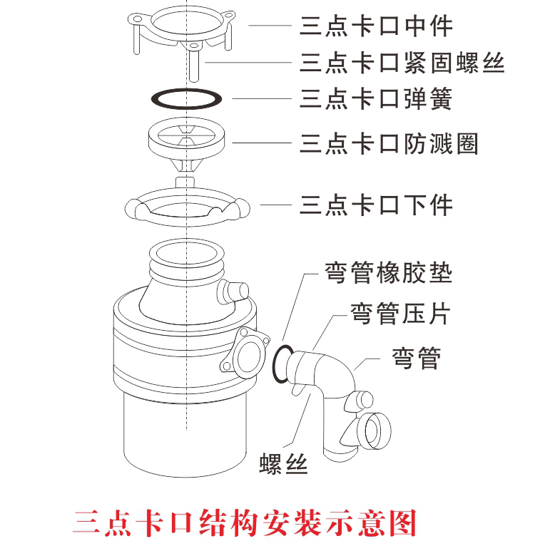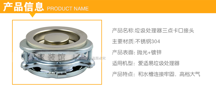 LoveSinkEasy Food Waste Disposer Connector Stainless Steel Three-Point Bayonet Connector Sink Connection Drain