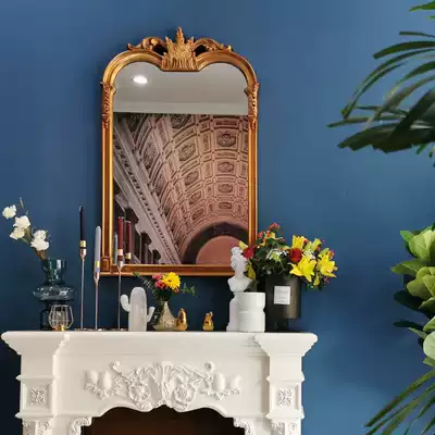 European-style makeup mirror Bedroom wall-mounted carved makeup mirror Living room entrance fireplace decoration mirror Baroque retro mirror