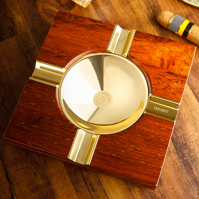 LUBINSKI Cigar Tobacco Ashtray Solid Wood Four Tank Special Cigarette Vat Retro Creative Personality High-end Chicken Wings Wood Cigarettes