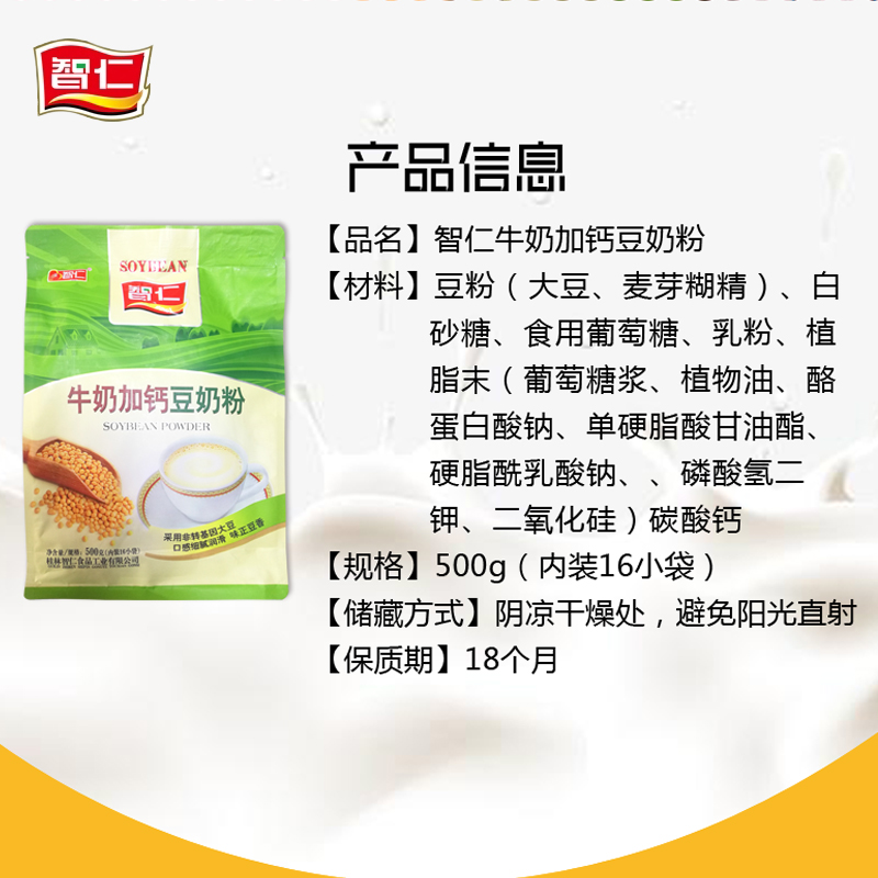 Zhiren milk plus calcium soy milk powder 500g bag ready-to-eat soy milk breakfast instant drink