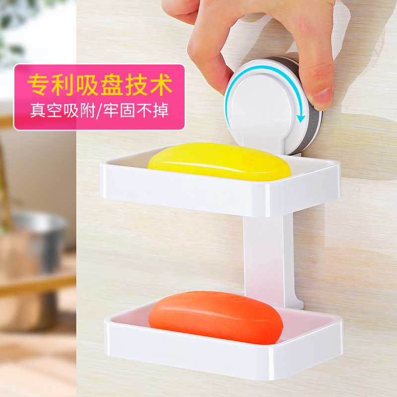 Powder room creative double-layer fat box Suction cup free hole incense box shelf rack Wall-mounted drain incense box