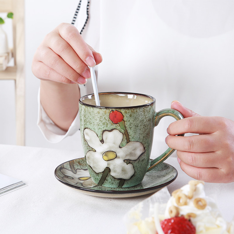 (Yuquan) Korean ceramic coffee cup set Creative simple water cup European mug for old home use