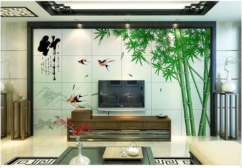 Ceramic background wall living room TV sofa background wall tile video wall 3D carving Chinese style simple bamboo 08