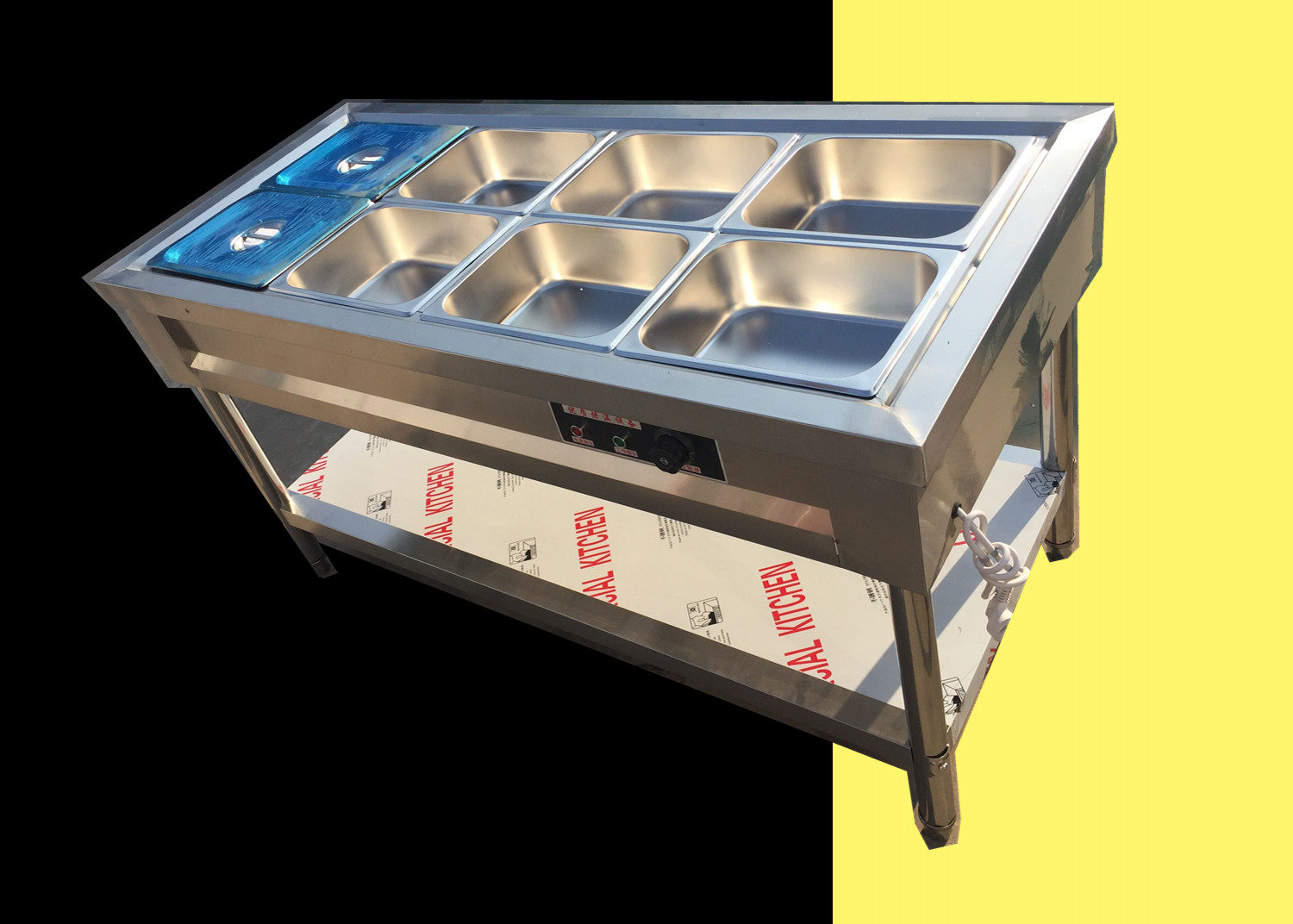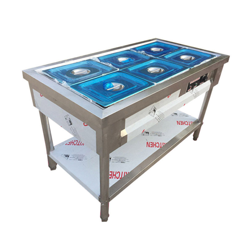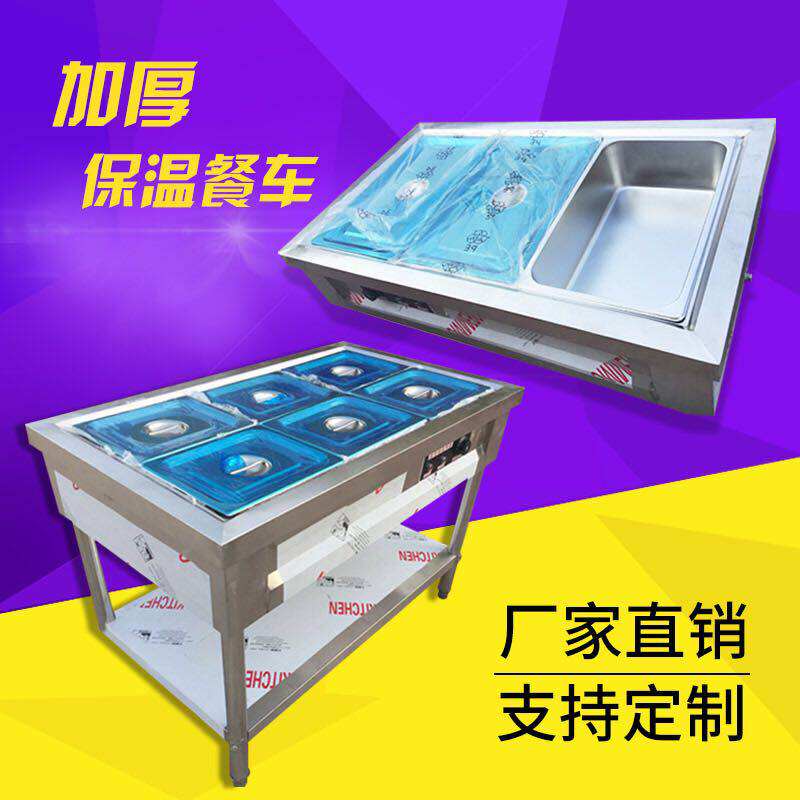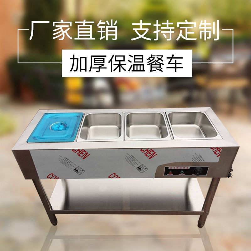 Stainless steel commercial electric heating insulation rice sales trolley Chinese-style vegetable sales table fast food car canteen sub-table soup pool
