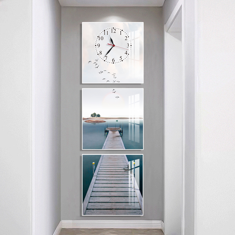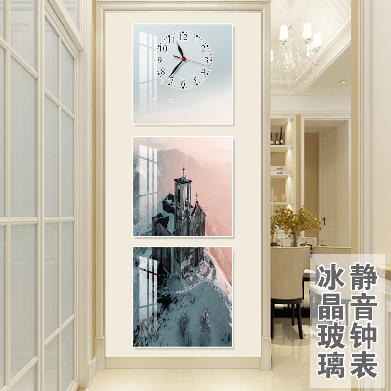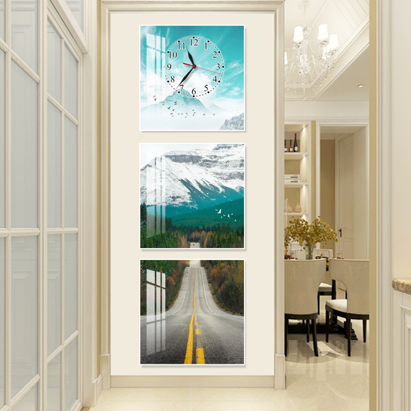 Porch decorative painting triple vertical hanging frameless painting Wall Clock Corridor mural painting ice crystal glass silent clock